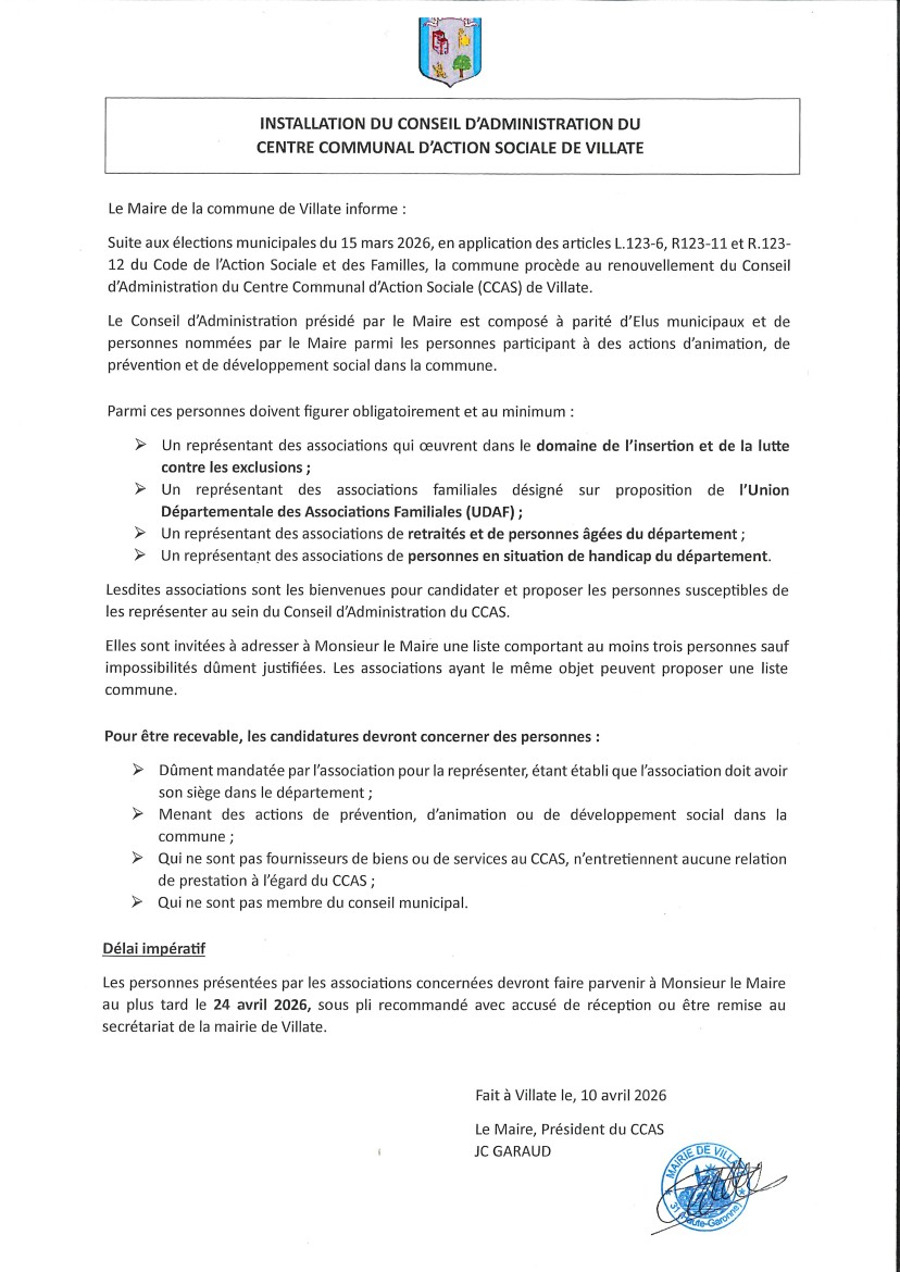 CCAS de Villate et structures sociales d'aide à la personne