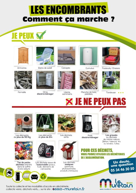 A compter du 1er janvier 2026, la collecte des encombrants s'effectuera uniquement sur rendez-vous, auprès des services du MURETAIN AGGLO, une fois par trimestre et selon un calendrier établi à l'avancE.